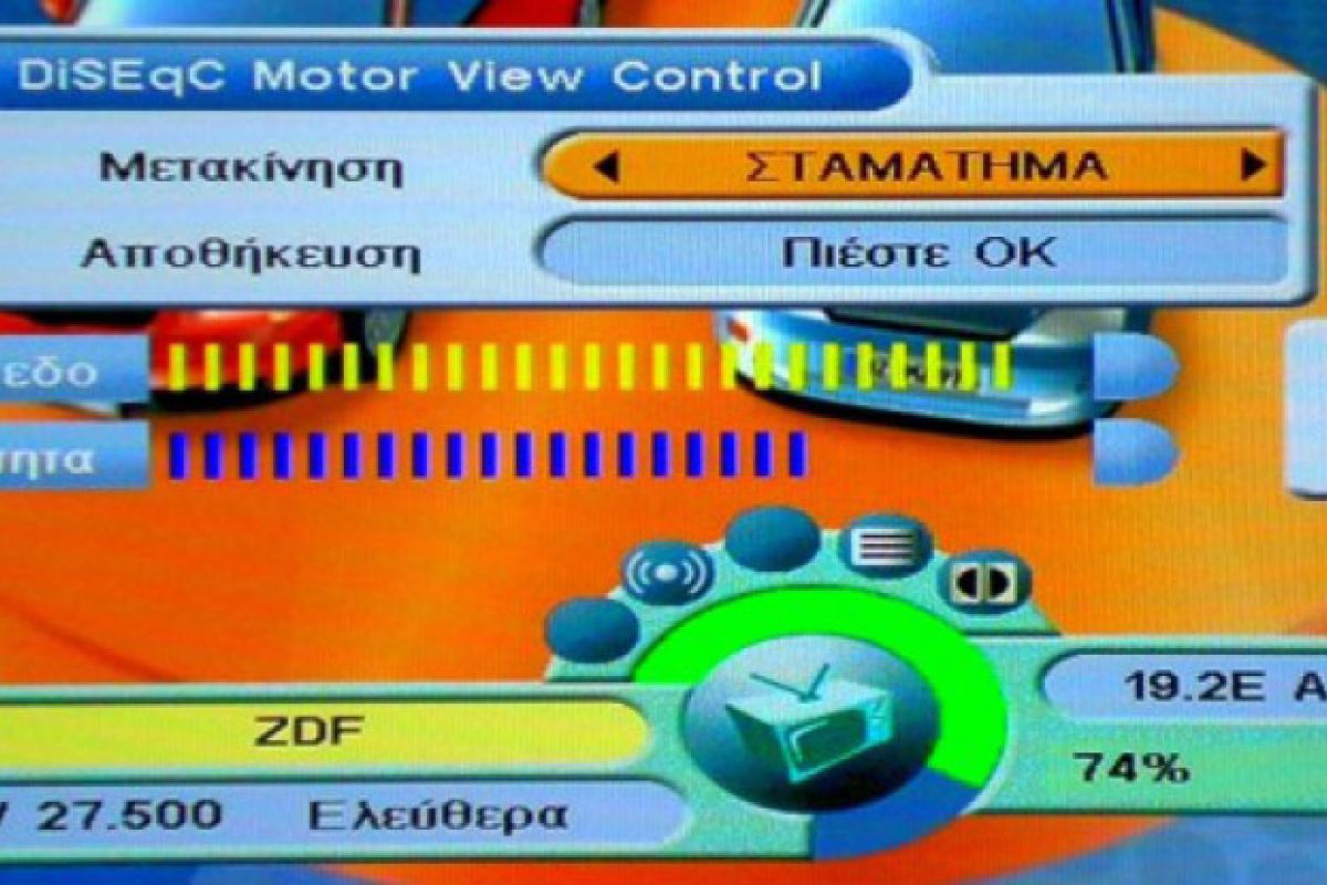 DiSEqC 1.2 Setup: Αν στον εξοπλισμό σας συμπεριλαμβάνεται μοτέρ κίνησης κατόπτρου DiSEqC 1.2, θα πρέπει να το δηλώσετε στον δέκτη από τα αντίστοιχα μενού. Αφού επιλέξετε δορυφόρο και κάποιο ενεργό transponder (η επιλογή γίνεται για να μπορούμε να βλέπουμε το σήμα του κατά την διάρκεια των ρυθμίσεων), πηγαίνετε στην εντολή Move (κίνηση) και με τα πλήκτρα κατεύθυνσης (βελάκια δεξιά και αριστερά) του τηλεκοντρόλ, κινήστε το μοτέρ, μέχρι να δείτε ένδειξη στην μπάρα ποιότητας σήματος. Στο σημείο που θα έχετε την ένδειξη καλύτερης ποιότητας, αποθηκεύστε την ρύθμιση. Μπορεί να υπάρχει επίσης επιλογή για μικρομετρική ρύθμιση του μοτέρ, δεξιά-αριστερά, ώστε να επιτύχετε όσο γίνεται μεγαλύτερη ακρίβεια στην ρύθμιση και άρα καλύτερη λήψη.
