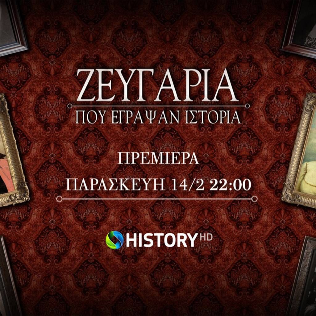 Τα «Ζευγάρια που έγραψαν Ιστορία» κάνουν πρεμιέρα στο COSMOTEHISTORYHD την Παρασκευή 14 Φεβρουαρίου και θα προβάλλονται κάθε Παρασκευή βράδυ στις 22.00 και σε επανάληψη κάθε Τρίτη στις 19.00. Το πρώτο επεισόδιο της σειράς θα είναι ταυτόχρονα διαθέσιμο και στο επίσημο YouTube κανάλι της COSMOTE TV.