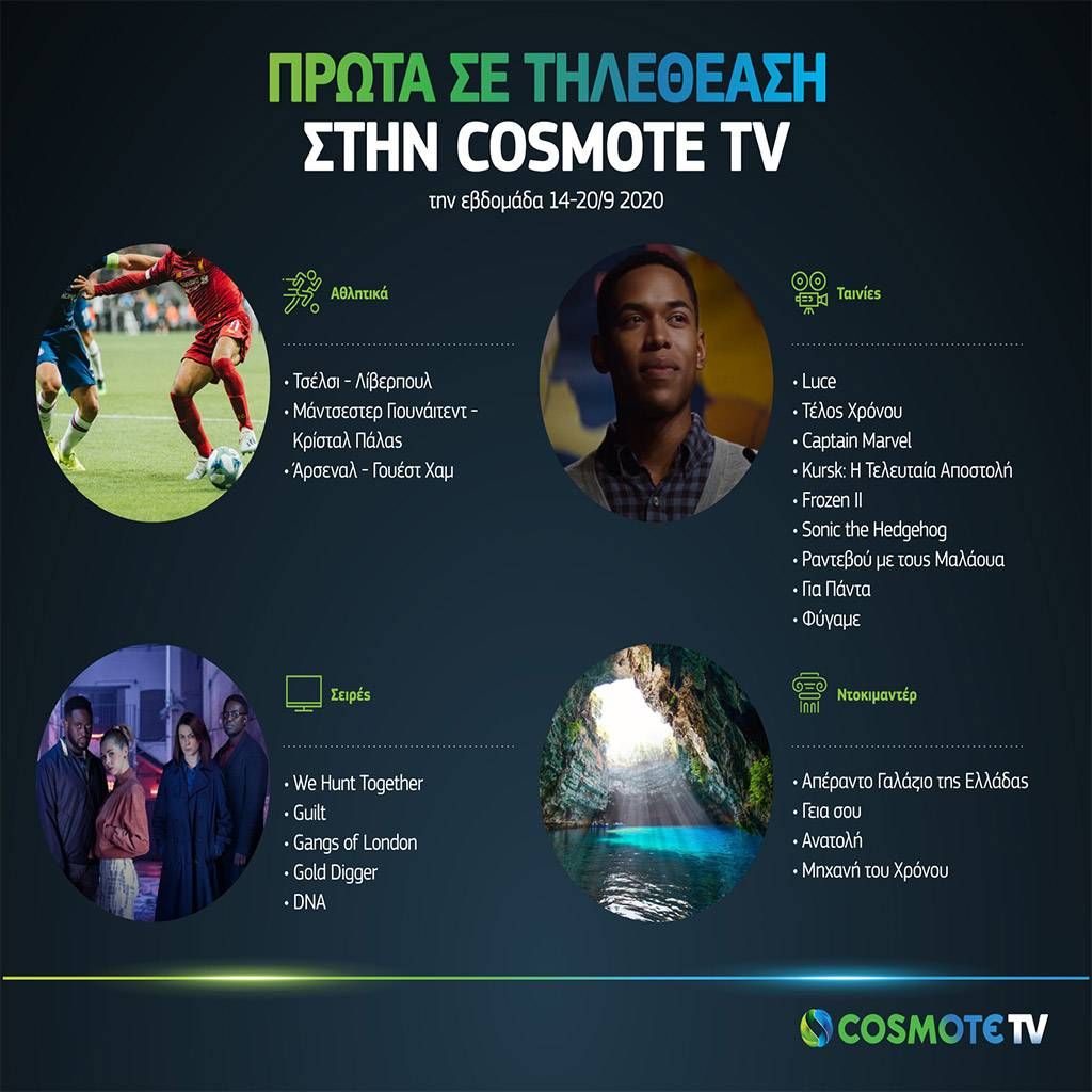 Τέλος, μέσα στη νέα τηλεοπτική σεζόν στην COSMOTE TV θα υποδεχτούμε νέα επεισόδια από επιτυχημένες παραγωγές, όπως «FBI» (3η σεζόν), «FBI: Most Wanted» (2η σεζόν), «The Resident» (4η σεζόν), «New Amsterdam» (4η σεζόν), «My Brilliant Friend» (3η σεζόν), «The Good Fight» (5ος κύκλος), The Great,(2η σεζόν) «The Spanish Princess» (Μέρος 2ο), «A Discovery of Witches» (2η σεζόν), «Magnum P.I.» (3η σεζόν), «The Rookie» (3η σεζόν), «MacGyver» (5η σεζόν) «Charmed» (3η σεζόν), «Zoey’s Extraordinary Playlist» (2η σεζόν), «A Million Little Things» (3η σεζόν), «Riviera» (3η σεζόν), «Manifest» (3η σεζόν), «Peaky Blinders» (5ος κύκλος), «Grantchester» (6η σεζόν) και «The Last Kingdom» (5ος κύκλος).
