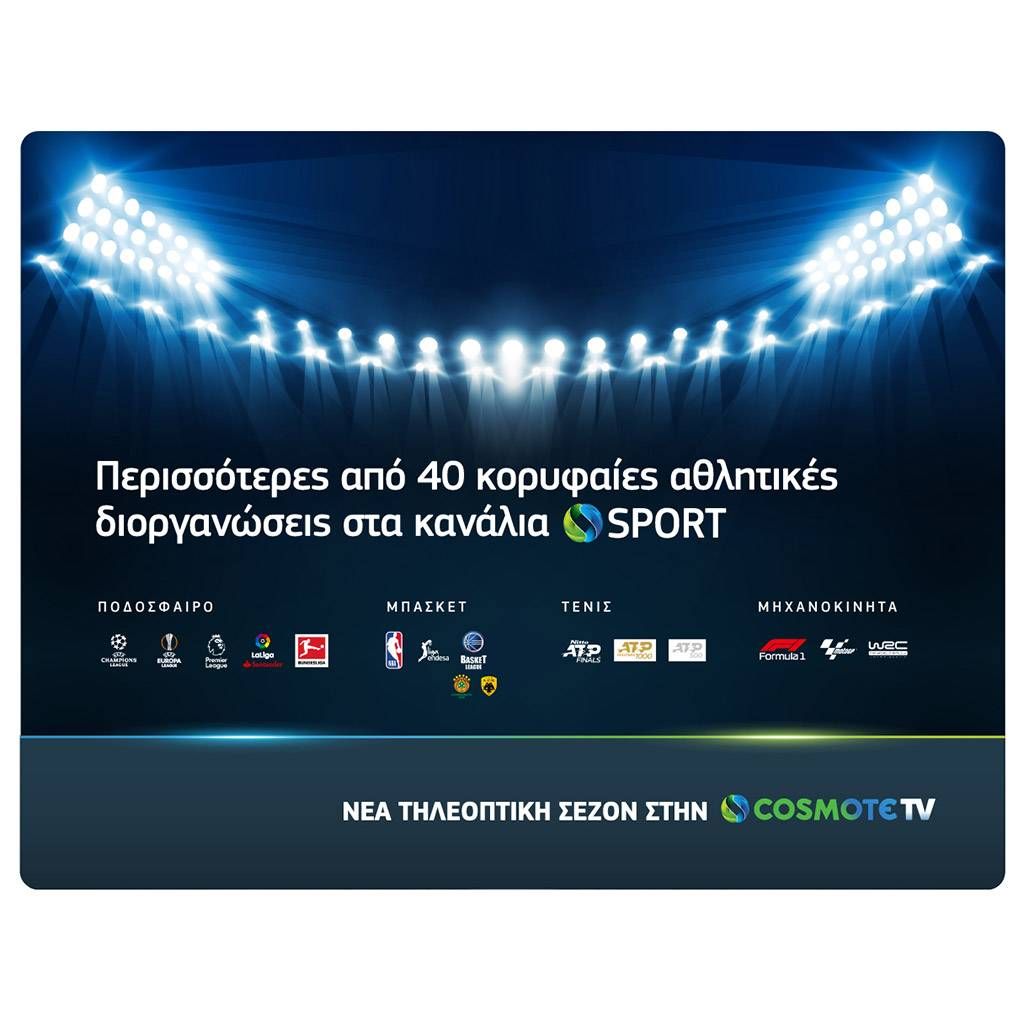 Πλούσιο αθλητικό περιεχόμενο με περισσότερες από 40 κορυφαίες διοργανώσεις σε ποδόσφαιρο, μπάσκετ, τένις, βόλεϊ, μηχανοκίνητα, πυγμαχία και χάντμπολ, αλλά και ποιοτική κάλυψη από τη δημοσιογραφική ομάδα των καναλιών COSMOTE SPORT, θα απολαύσουν οι τηλεθεατές τη νέα τηλεοπτική σεζόν στα κανάλια COSMOTE SPORT.