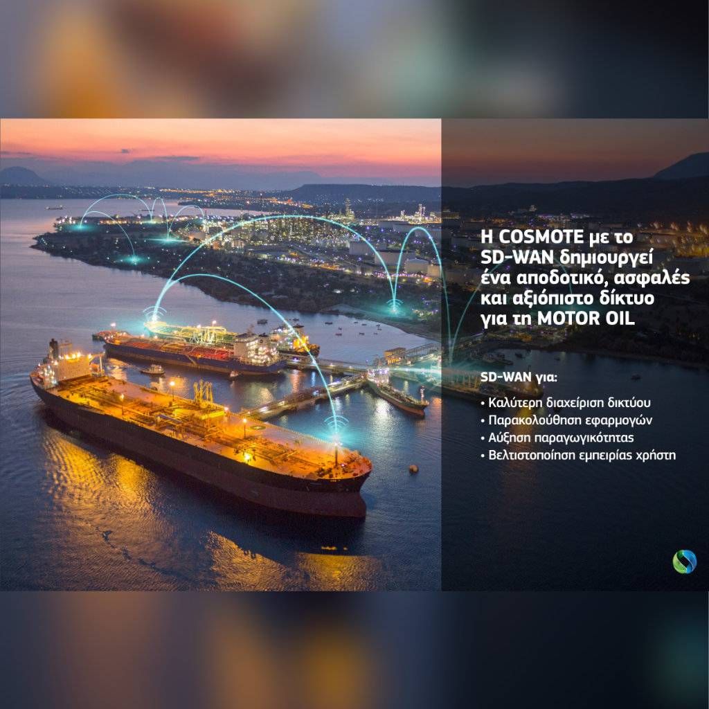 Την πρωτοποριακή, ολοκληρωμένη λύση SD-WAN παρέχει η COSMOTE στην MOTOR OIL αναβαθμίζοντας το τηλεπικοινωνιακό της δίκτυο, ως προς την αποδοτικότητα, την ασφάλεια και την αξιοπιστία του. Το SD-WAN σε συνδυασμό με τις υπηρεσίες συνδεσιμότητας (Connectivity) και τις υψηλών προδιαγραφών ICT λύσεις που διαθέτει η COSMOTE, συμβάλλει καθοριστικά στον ψηφιακό μετασχηματισμό του Ομίλου MOTOR OIL.