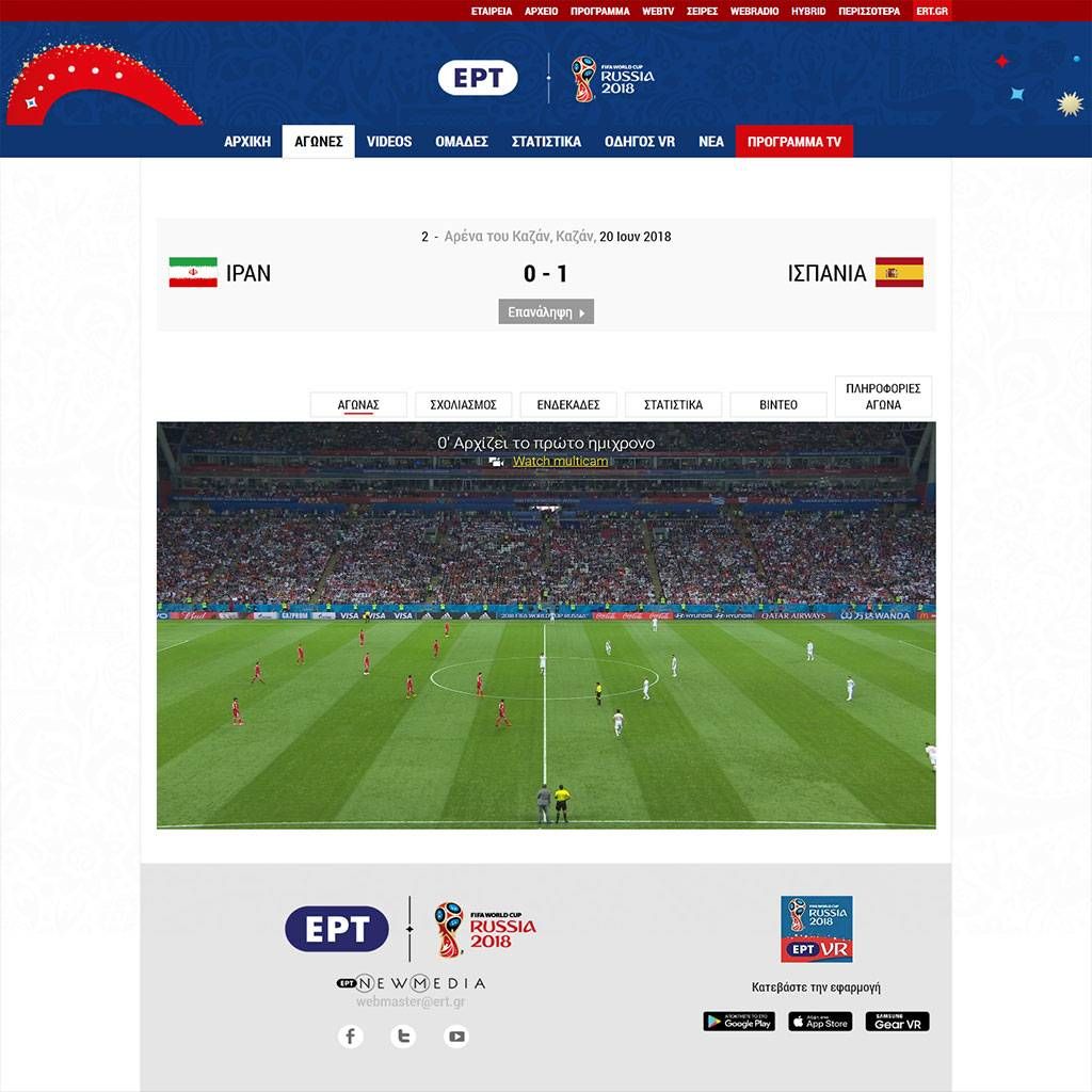 Οι κάτοχοι «έξυπνων τηλεφώνων» και tablets μπορούν να κατεβάσουν την εφαρμογή ERT VR, μέσω της οποίας, μπορούν να απολαύσουν τους αγώνες σαν να βρίσκονται μέσα στα γήπεδα της Ρωσίας, να επιλέξουν κάμερα ώστε να έχουν τη γωνία θέασης που επιθυμούν αλλά και να αντλήσουν χρήσιμες πληροφορίες και στατιστικά για τις ομάδες και τους παίκτες.