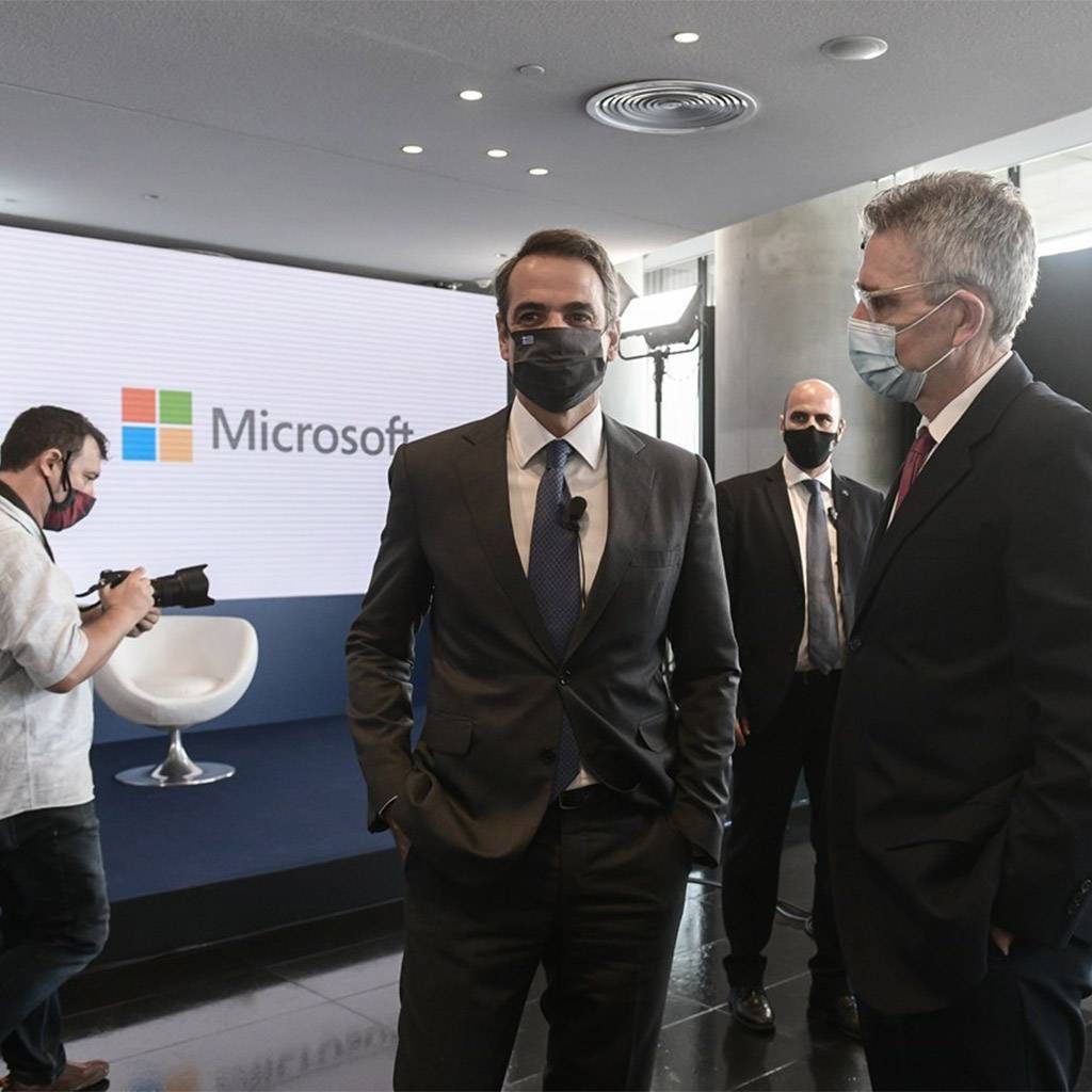 Ο πρόεδρος της Microsoft Μπραντ Σμιθ και ο Έλληνας πρωθυπουργός Κυριάκος Μητσοτάκης παρουσίασαν ζωντανά στο Μουσείο της Ακρόπολης τις λεπτομέρειες της επένδυσης που θα κάνει η αμερικανική εταιρεία τεχνολογίας στην Ελλάδα, μια επένδυση ύψους ενός δισ. ευρώ.