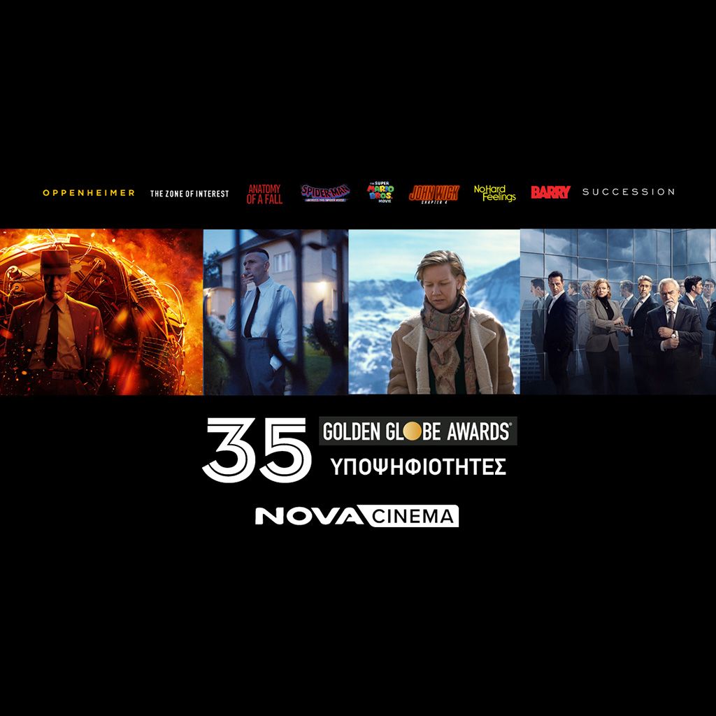 Η Nova, μέλος της United Group του κορυφαίου παρόχου τηλεπικοινωνιών και μέσων στη Νοτιοανατολική Ευρώπη, συνεχίζει να πρωταγωνιστεί και να σαρώνει στα μεγαλύτερα διεθνή βραβεία, αποσπώντας 35 υποψηφιότητες σε όλες τις Premium Κατηγορίες στις φετινές Χρυσές Σφαίρες για ταινίες και σειρές που προβάλλονται αποκλειστικά από τα κανάλια της, τα Novacinema, τον απόλυτο κινηματογραφικό προορισμό!