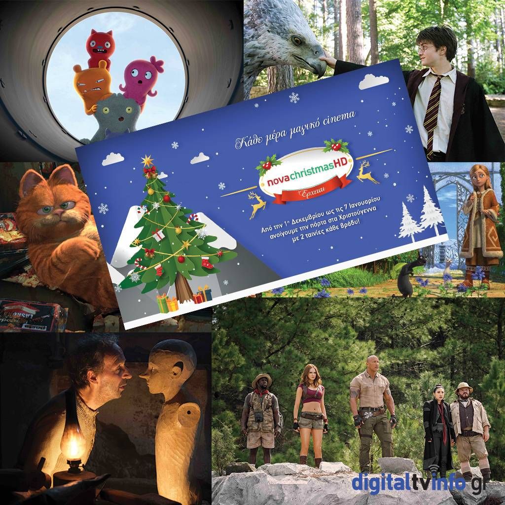 Το Χριστουγεννιάτικο κανάλι της Nova, NovachristmasHD έρχεται με επιλεγμένες πρεμιέρες ταινιών, μεταγλωττισμένες παιδικές ταινίες και οικογενειακές περιπέτειες φαντασίας, από την 1η Δεκεμβρίου μέχρι και τις 7 Ιανουαρίου, κάθε βράδυ με δύο ταινίες από τις 20:00. Ανάμεσα τους: «Jumanji: Η επόμενη πίστα», «Spiderman: Μακριά από τον τόπο του», «Addams’ Family», «ΤinTin», ο αγαπημένος «HarryPotter», «Ο Άρχοντας των Δαχτυλιδιών», o «Hobbit», αλλά και ο μοναδικός «Pinocchio» που είναι και η μεγάλη πρεμιέρα της Πρωτοχρονιάς, με τον RobertoBenigni, καθώς επίσης και πολλές άλλες. Όλο το μαγευτικό πρόγραμμα του NovachristmasHD θα βρίσκεται διαθέσιμο και στην υπηρεσία OnDemand στην κατηγορία «ChristmasTime», έτσι ώστε οι συνδρομητές της Nova να έχουν την ευκαιρία να το απολαύσουν όποτε θέλουν και όπου και αν βρίσκονται!