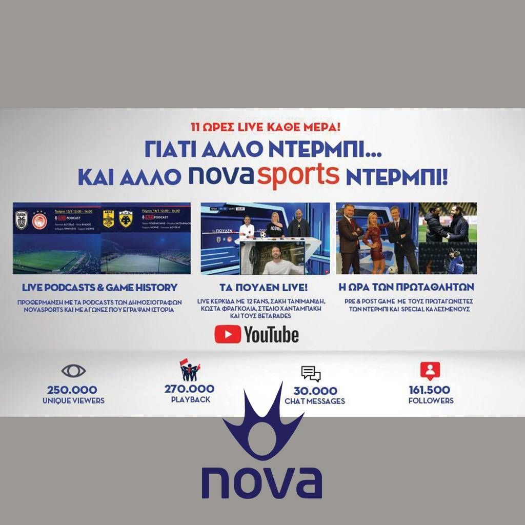 - 18:00 Η Ώρα των πρωταθλητών – Α’ μέρος, Novasports2HD και διαθέσιμα LIVE στην ιστοσελίδα, το Facebook & στο YouTube κανάλι του Novasports σε παρουσίαση του Γρηγόρη Παπαβασιλείου και του Γιαννίκου Δούσκα